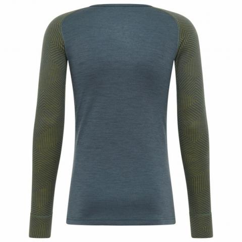 > Suitable for: Recommended use: mountaineering, skiing, ski touring, snowboard Main material: 80% wool, 20% polyamide Inner material: 100% polyester Material type: synthetic fibre, merino wool Material thickness: 20.5 micron, 205 g/m² Technology: Thermolite Fabric properties: breathable, odour-resistant, stretchy, temperature regulating Shop consciously: mulesing-free Care instructions: machine wash 30°C Fit: slim Sleeve length: longsleeve Extras: flatlock seams, raglan sleeves, crew neck, drop back hem