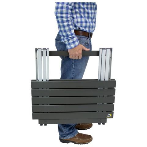 > Recommended use: camping Material type: aluminium Load capacity: 27 kg Dimensions (outer): 63 x 63,5 x 71,6 cm Packed dimensions: 63 x 5 x 61,7 cm Weight: 2,800 g