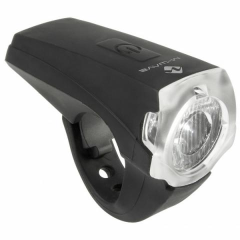 > Recommended use: cycling Material type: plastic, silicone Attachment: integrated silicone holder; mounting on handlebars Functions: battery level indicator Power source: lithium-ion rechargeable battery Interface: USB Bulb type: CREE LED Luminosity: 25 Lux Protection against water: IPx4 (splash proof) Dimensions (outer): 22.2 – 32 mm (diameter bracket) Weight: 86 g Includes: charging cable included Note: approved for German road traffic