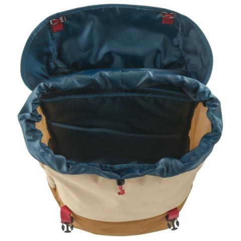 > Suitable for: Recommended use: leisure, hillwalking Main material: 100% polyester Inner material: 100% polyester Straps: 100% polyamide Material type: polyamide, polyester Material thickness: 200 denier, 600 denier Fabric treatment: DWR treated, PU coated Fabric properties: highly water repellent Shop consciously: contains recycled polyamide, contains recycled polyester, Fair Trade Certified, PFC-/PFAS-free Carry system: padded shoulder straps Main compartment access: toploader Weight: 519 g Reference size: One Size Extras: logo patch